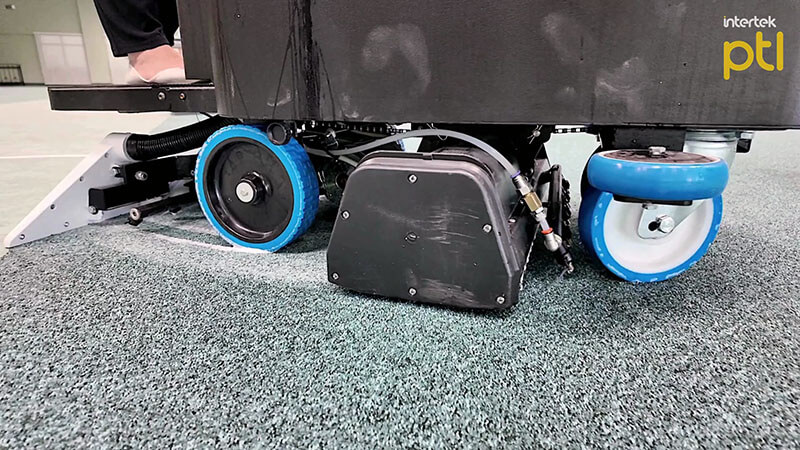 Testing also extends to flooring adhesives, installation tapes, underlayments, and specialty sports flooring systems. Specialty sports flooring includes hardwood court systems, synthetic gym flooring, indoor and outdoor turf systems, multipurpose athletic surfaces, and shock-absorbing underlayment assemblies used in schools, arenas, fitness centers, playgrounds and training facilities.